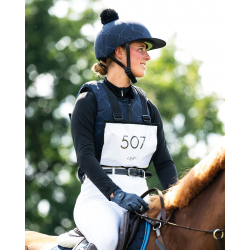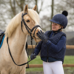Ce couvre-casque avec impression d'étrier et pompon est doté d'une visière qui protège du soleil et des branches basses lors des randonnées à cheval. La visière ne gêne pas en cas de chute.