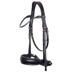 Bridon en cuir avec têtière anatomique extra douce et muserolle de forme anatomique sans dragonne.