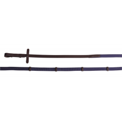 Bridon en cuir chic en brun Havane avec des détails bleu foncé sur le frontal et la muserolle. Inclut des rênes sangles.