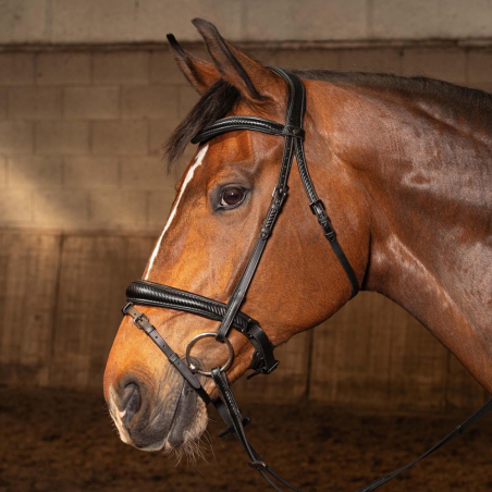 Bridon en cuir souple et confortable, doté d’un frontal anatomique et d’une muserolle combinée anatomique.