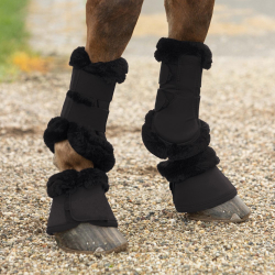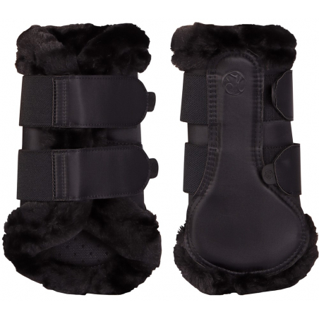 Protège-jambes avec une fermeture élastique solide à velcro. Doublés en mesh pour une évacuation optimale de la chaleur et ornés d’un bord en fausse fourrure pour un aspect luxueux. Grâce à leur coupe optimale, le cheval bénéficie d’une grande liberté de mouvement.
