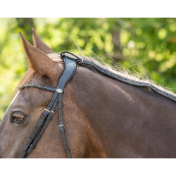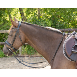 Pour un confort optimal, sa têtière est anatomique, ce qui va réduire les points de pression et ainsi libérer le cheval. De plus, toutes les parties en contact avec la peau (Têtière, frontal et muserolle suédoise) sont doublées avec du cuir de vachette pour un contact plus soft.