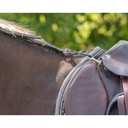 Les rênes d'aide empêchent d'aller brouter pendant la monte. La rêne est largement réglable et se fixe facilement grâce à la fermeture à clip.