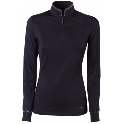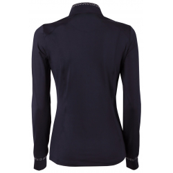 Chemise de concours à manches longues et col montant avec une courte fermeture éclair. Le col et les poignets sont décorés tout autour de cristaux.